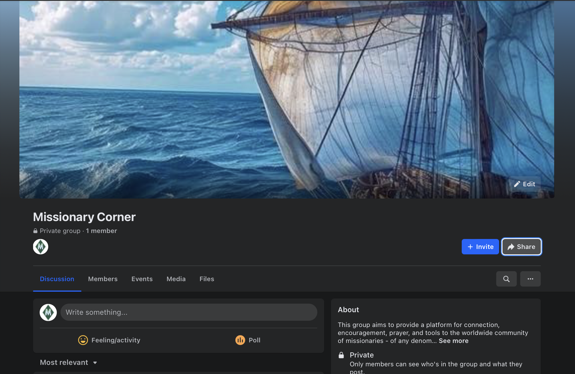 This group aims to provide a platform for connection, encouragement, prayer, and tools to the worldwide community of missionaries - of any denomination or background. You can share prayer requests or praises. Share Bible verses and respond to them with your thoughts. Share tools and reviews of tools such as LOGOS Bible Software. And much more. Join the group here